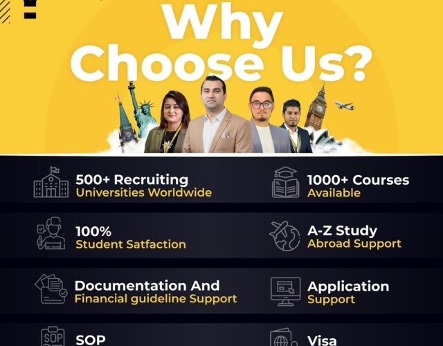 We offer counseling, application help, visa support, test prep, and pre-departure briefings.