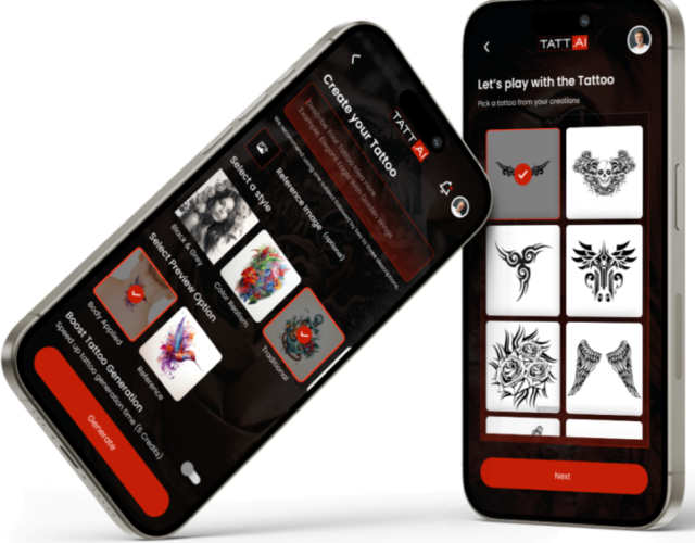 Tatt AI revolutionizes the tattoo industry with its innovative service. Simply share your desired tattoo, and our advanced AI technology crafts the perfect design for you. Use our Tattoo Wizard to preview your tattoo on any part of your body, ensuring it fits perfectly. Once satisfied, finalize your design and seamlessly connect with skilled tattoo artists worldwide through TATT.AI. Let us turn your tattoo visions into reality with precision and creativity. Join Tatt AI today and embark on a journey of self-expression, where every tattoo reflects your unique story. Available on Google Play Store and Apple App Store.