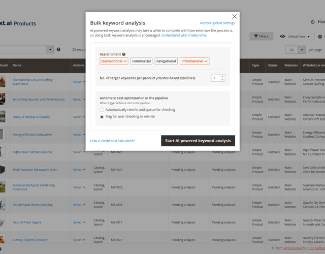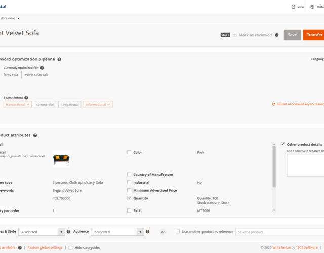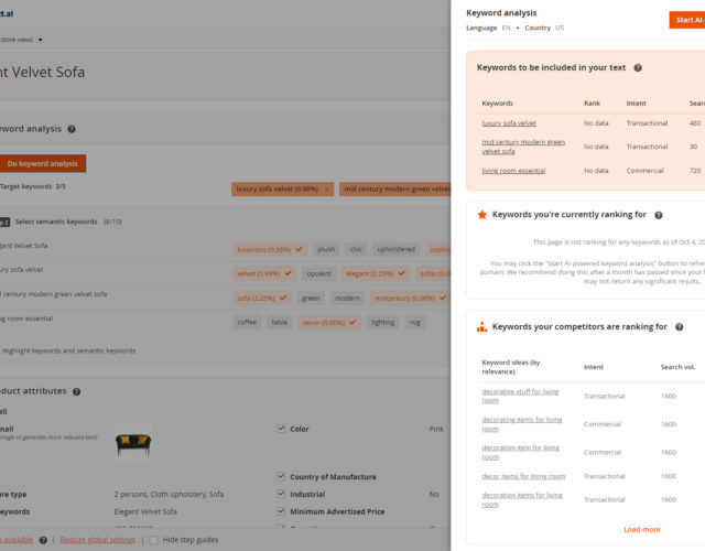 - Category text creation: Develops SEO-friendly category descriptions in harmony with the products residing in the category.