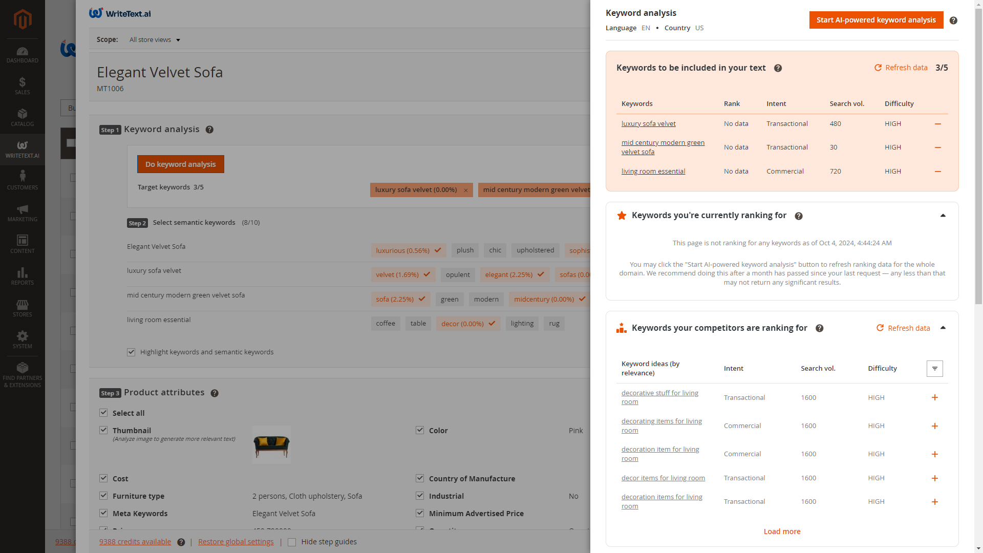 - Category text creation: Develops SEO-friendly category descriptions in harmony with the products residing in the category.